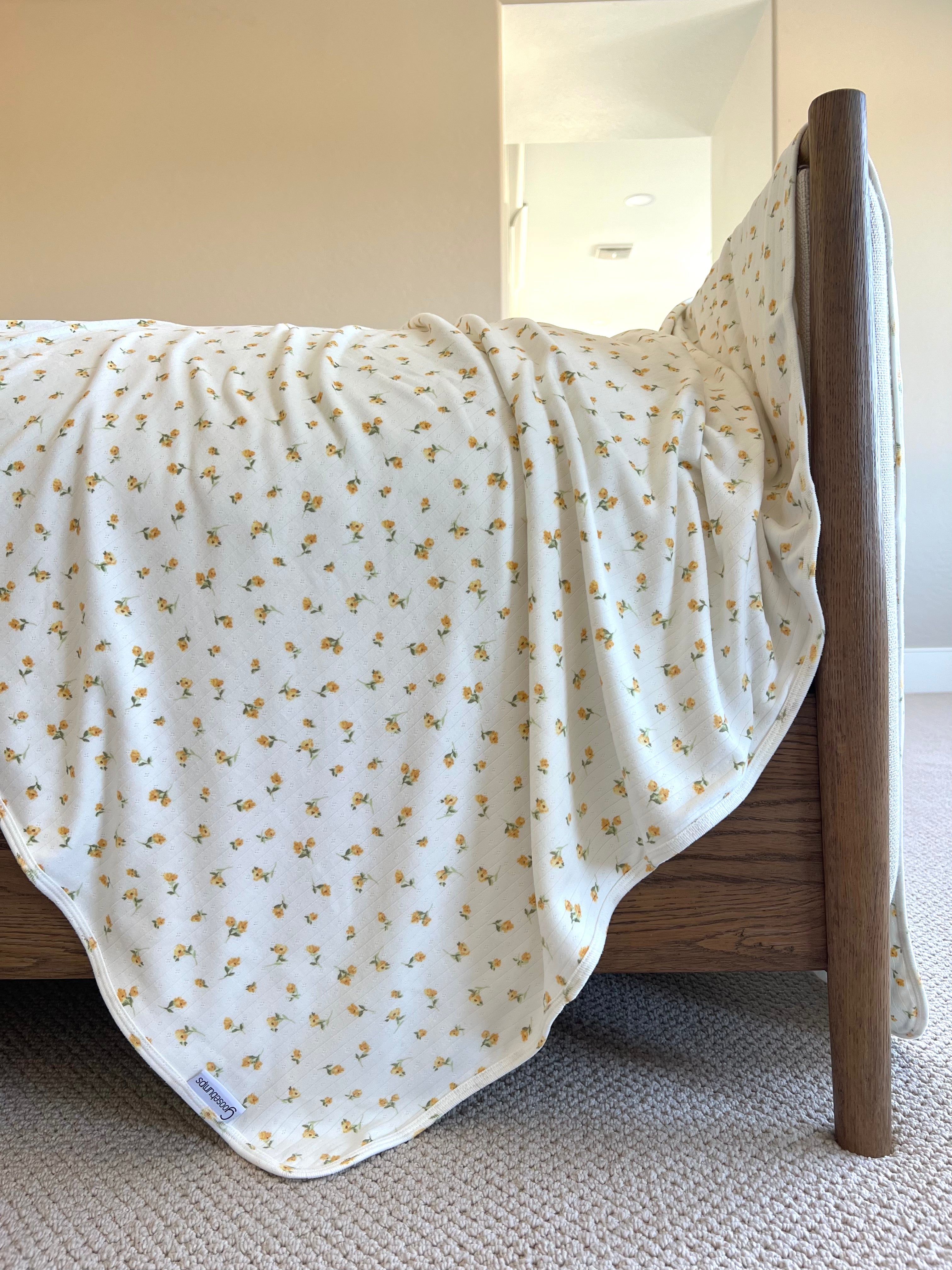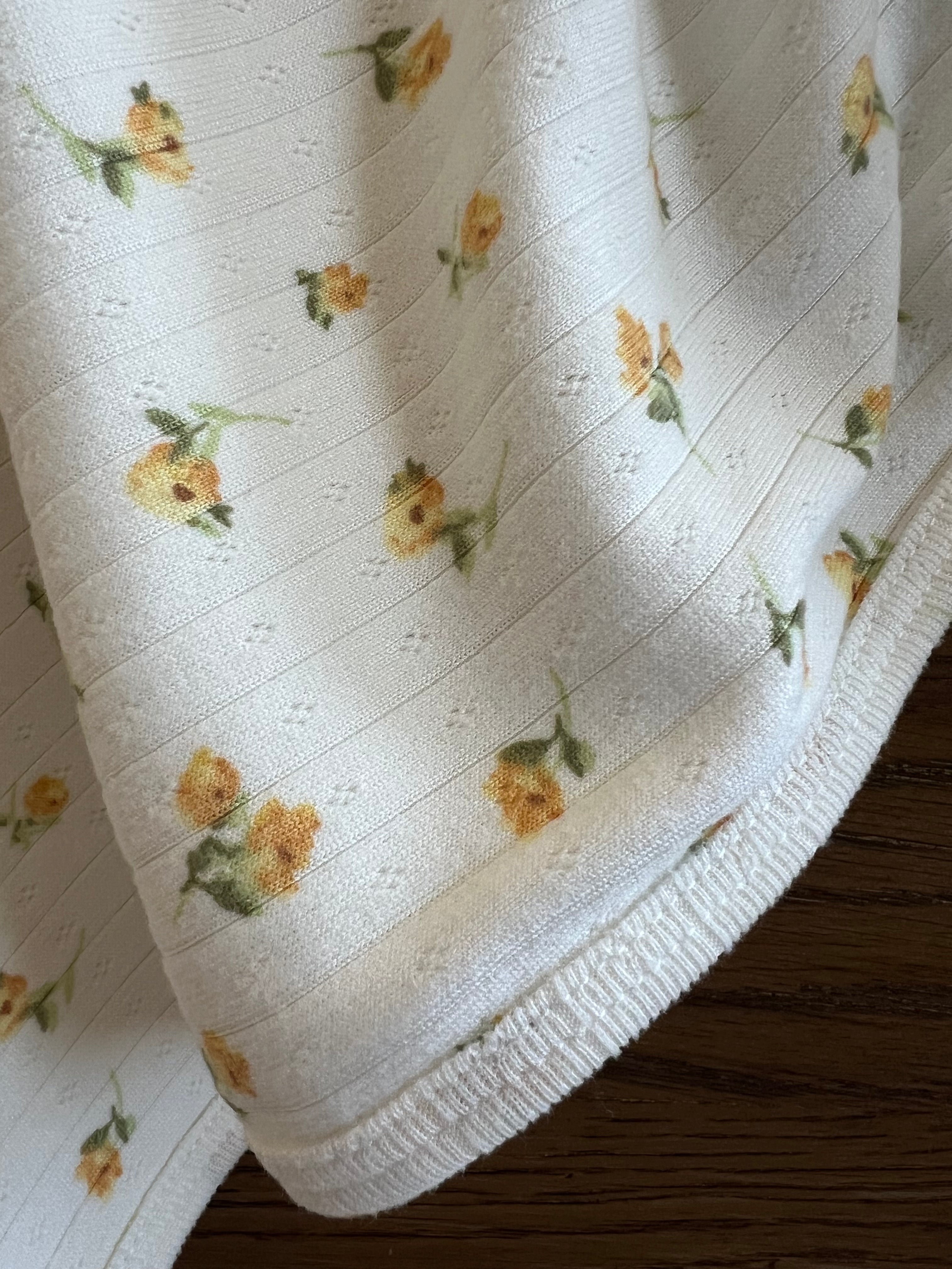 - white w/ yellow flowers ribbed pointelle, binded and backed in same