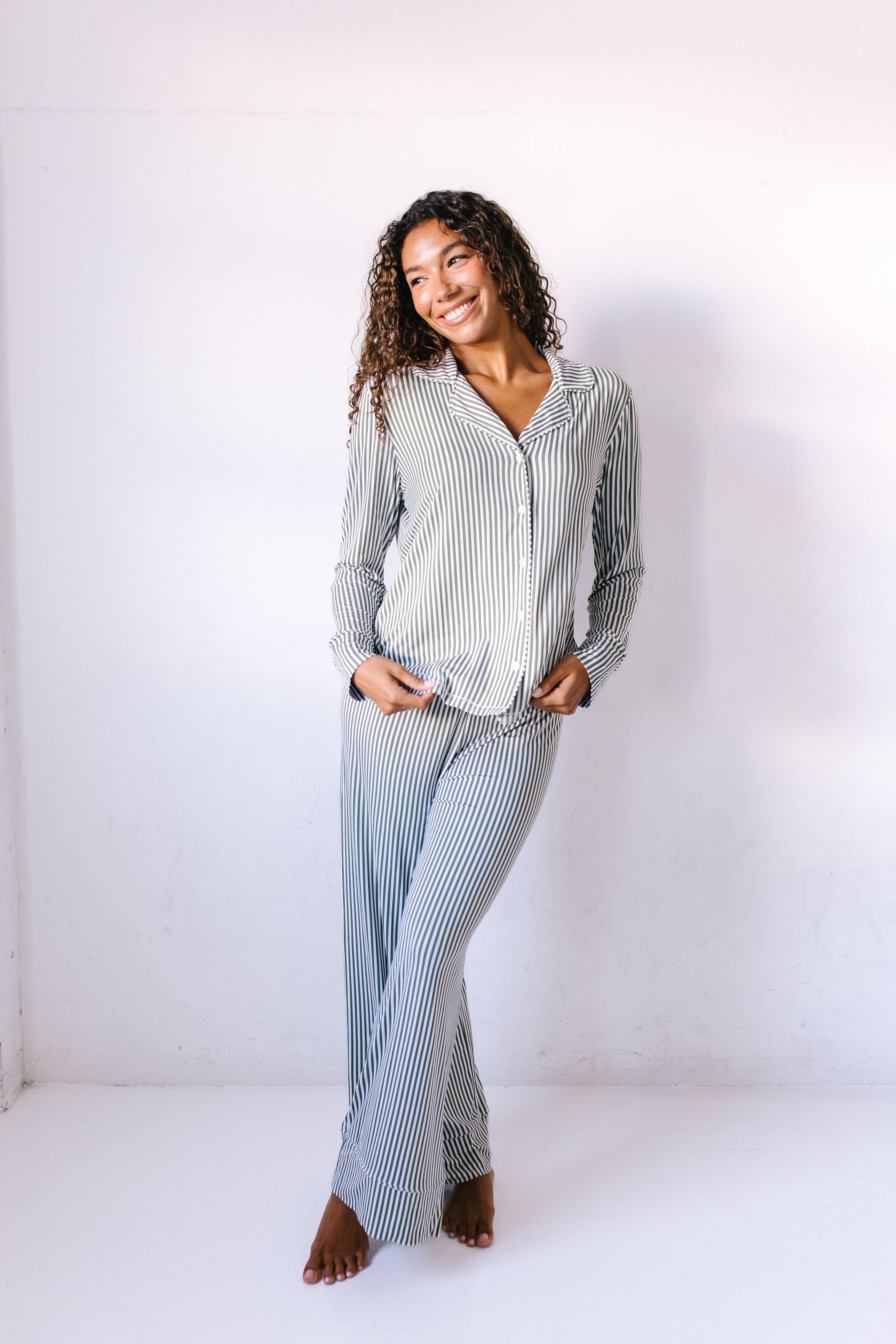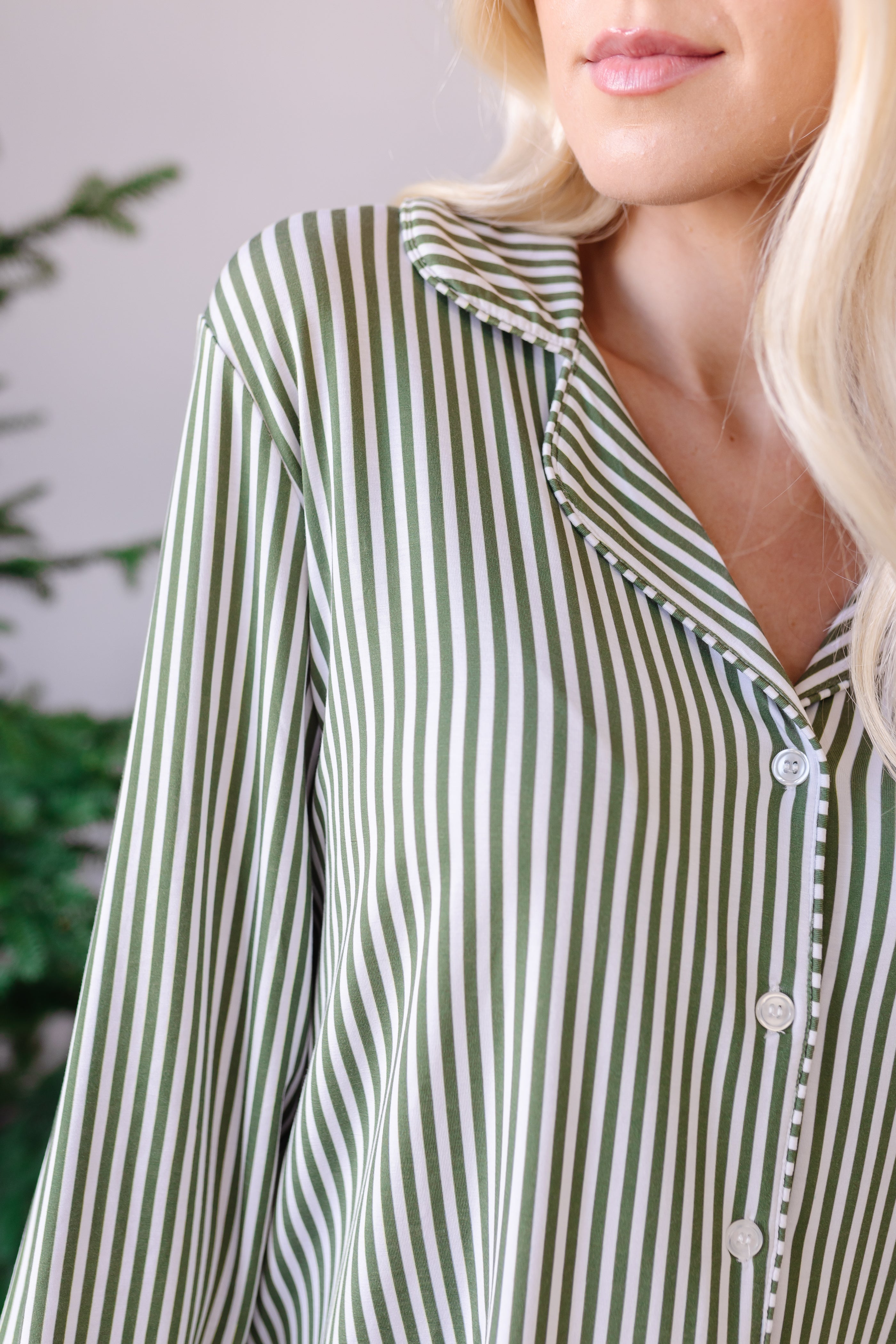 Unwind in absolute comfort with our classic top adorned with a button closure, notched collar, gracefully long sleeves and accented with piping for a touch of timeless elegance. Paired perfectly with our matching pant boasting a cozy elastic drawstring waist, completed with ties and complementing piping details. Every aspect is designed to enhance your lounging experience, the Goosebumps way.