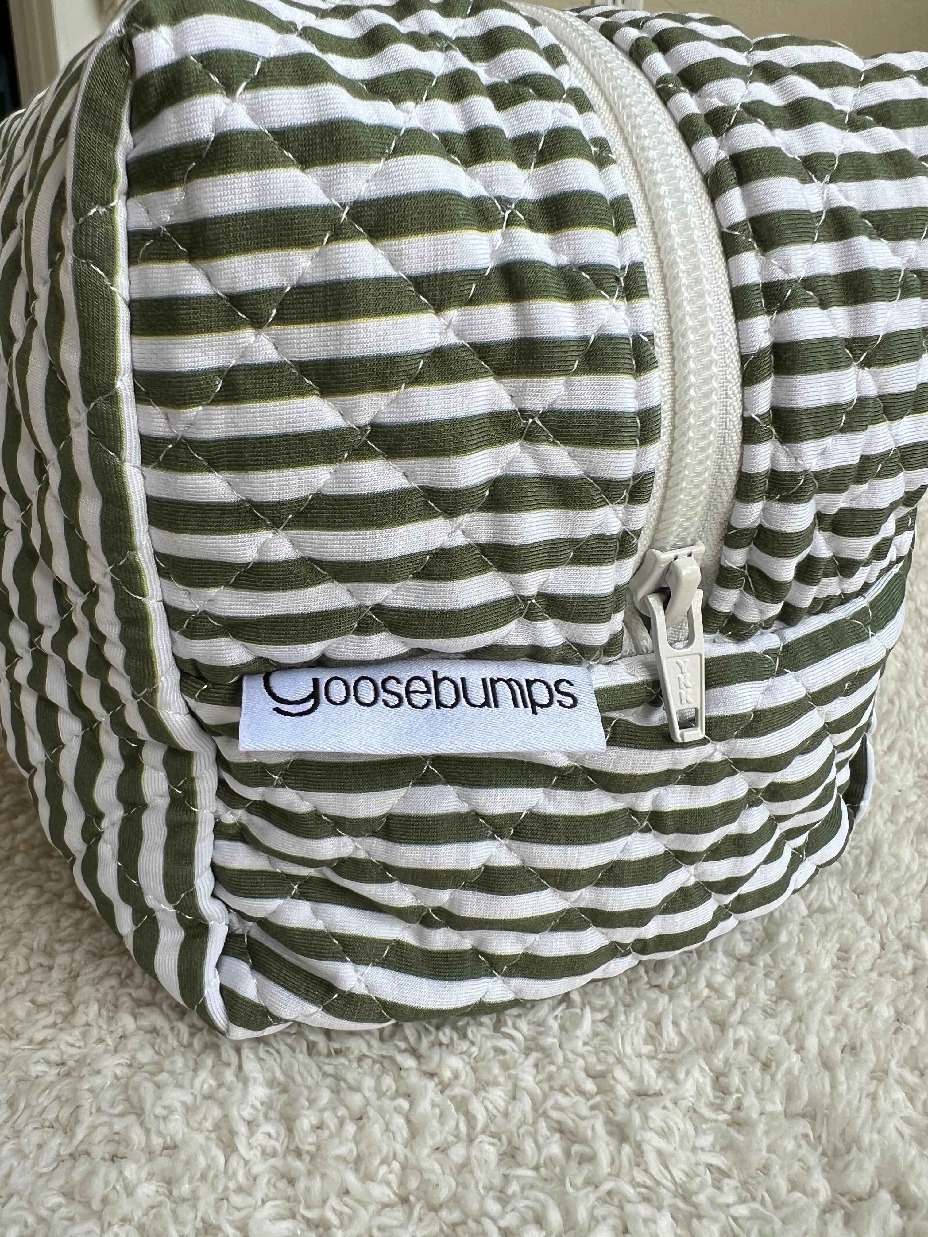 Meet your new travel essential: the Goosebumps Travel Bag! Designed in our signature custom Goosebumps prints, this adorable bag is perfectly sized (10"x6"x6") to carry your adult swaddle with ease-every size fits like a dream. Not only is it super functional, but it's also as soft to the touch as your favorite Goosebumps goodies. Stay stylish and cohesive while traveling in ultimate comfort. Because who says your travel accessories can't be as cute and cozy as you are?