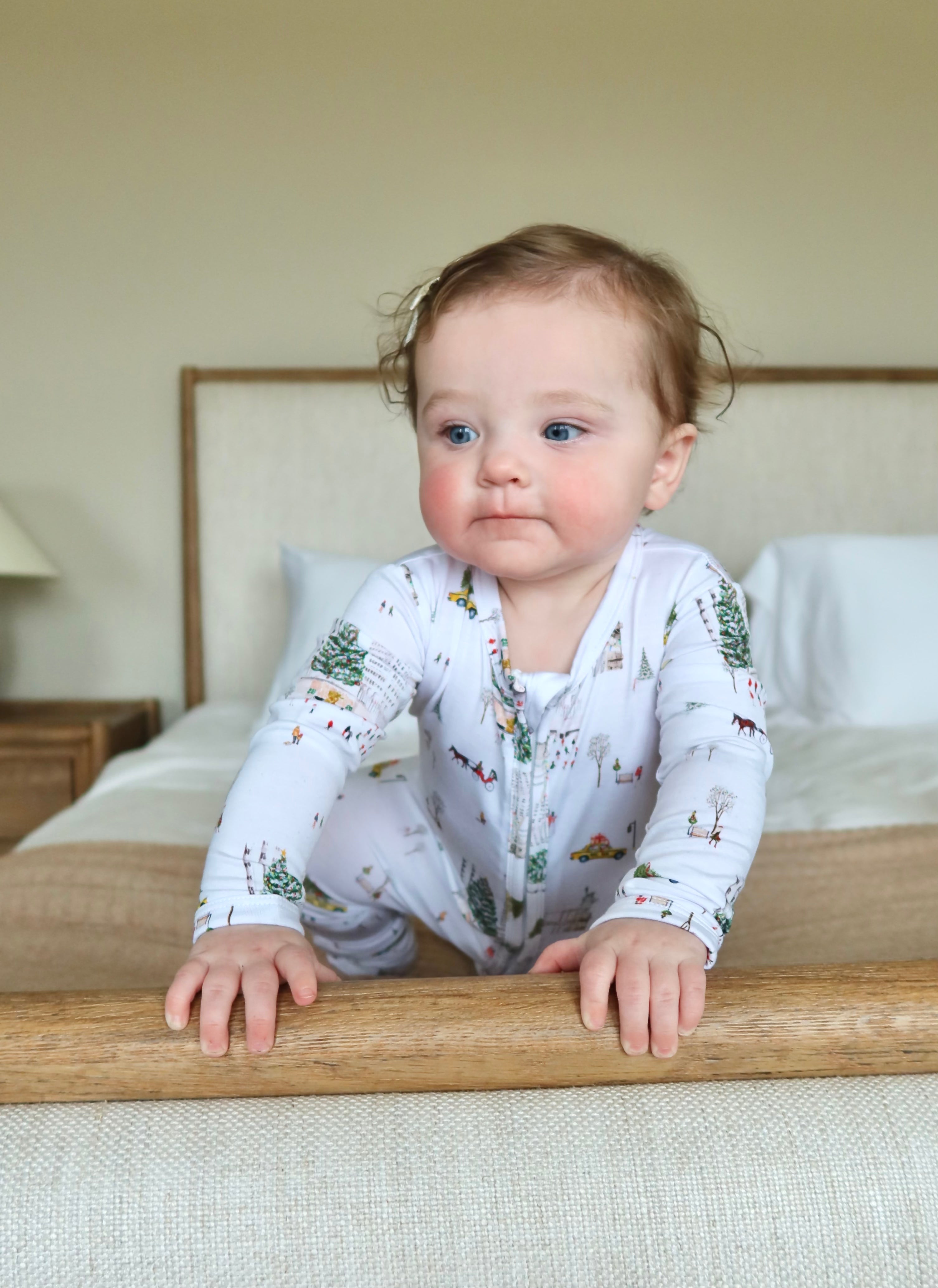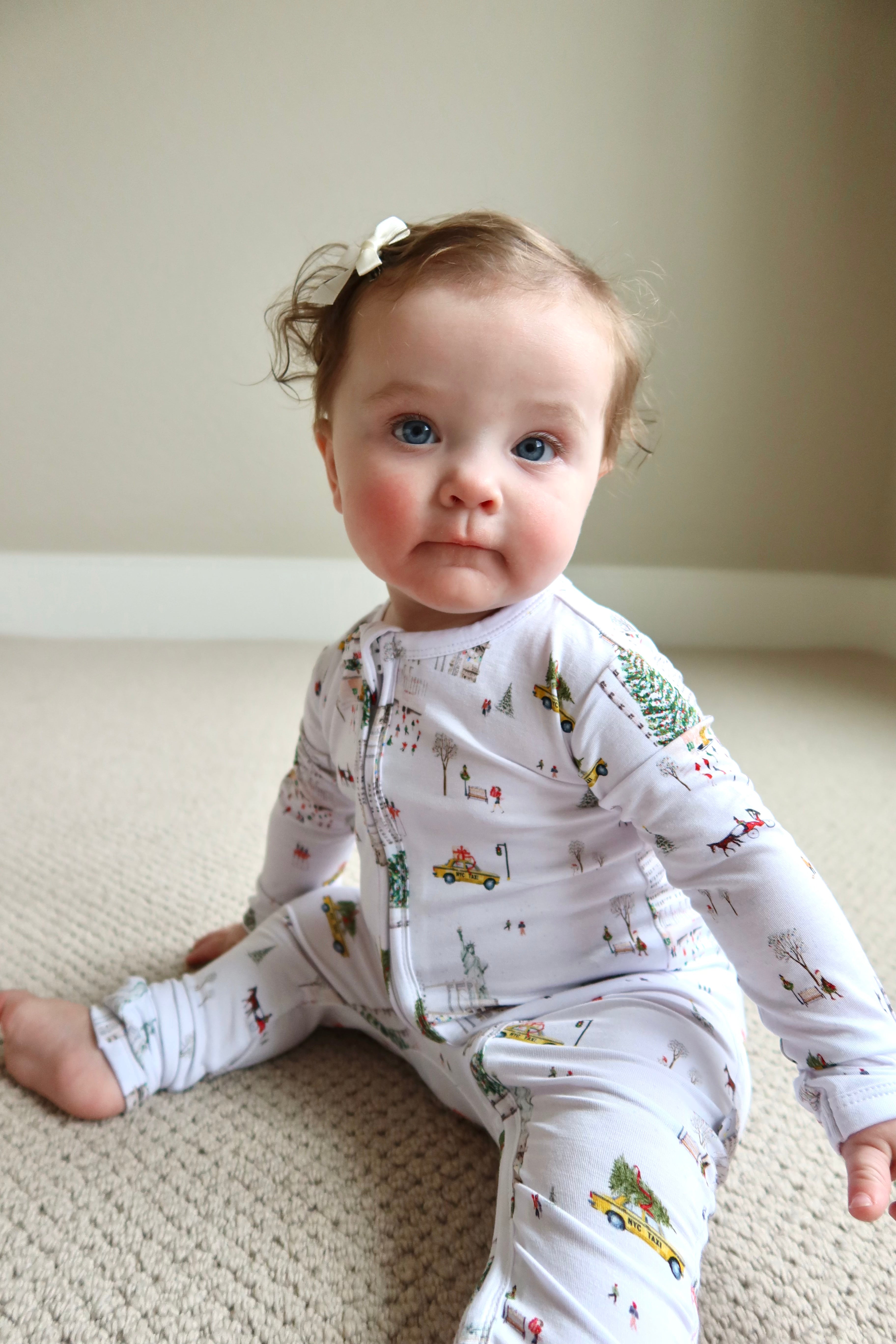 dress your babe in our modern, delicate one piece 2 WAY zipper closure w/ long sleeve. Crafted with our signature optional footie, with an optional footie cuff. Fold over mittens on the 0-3 month zipper.