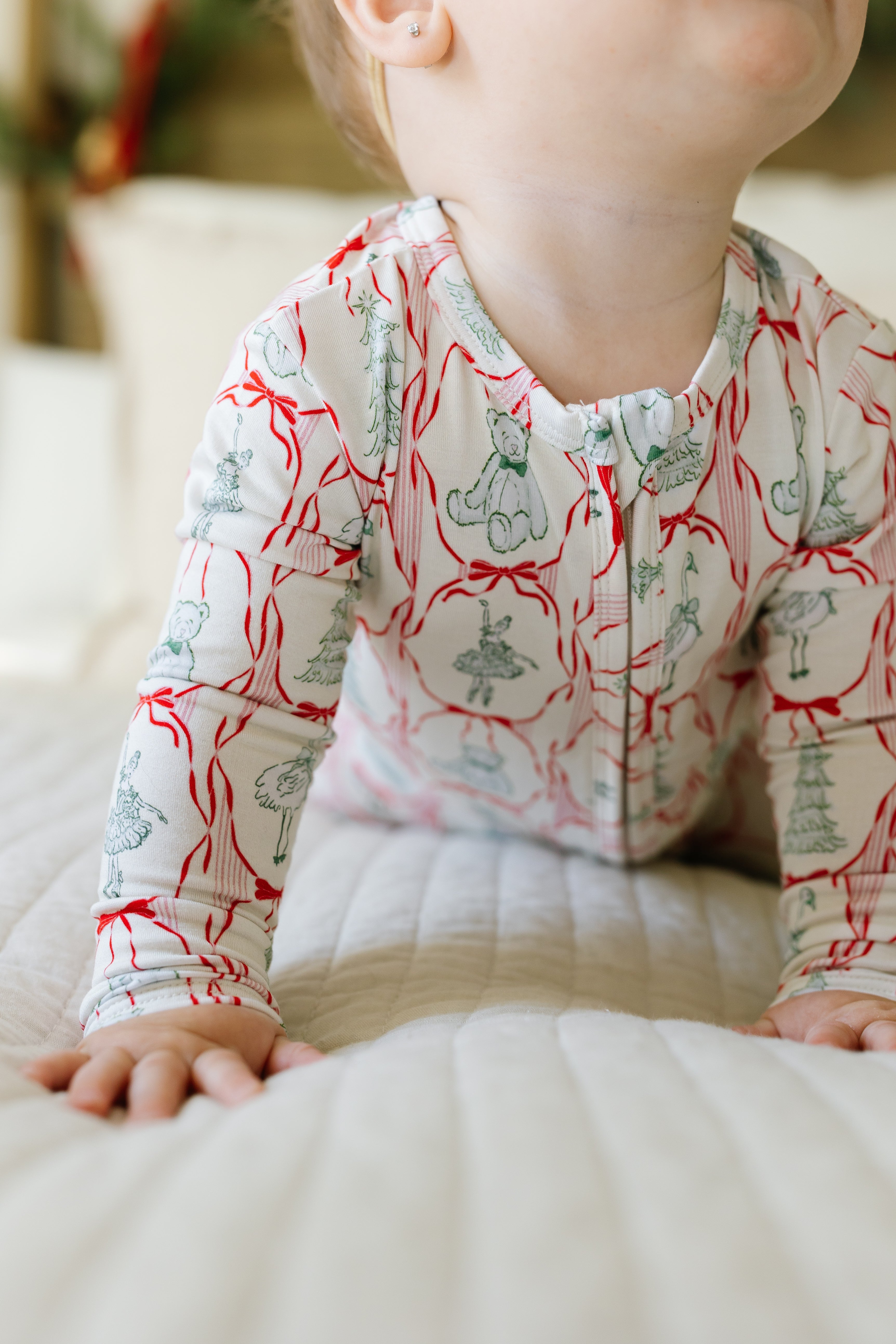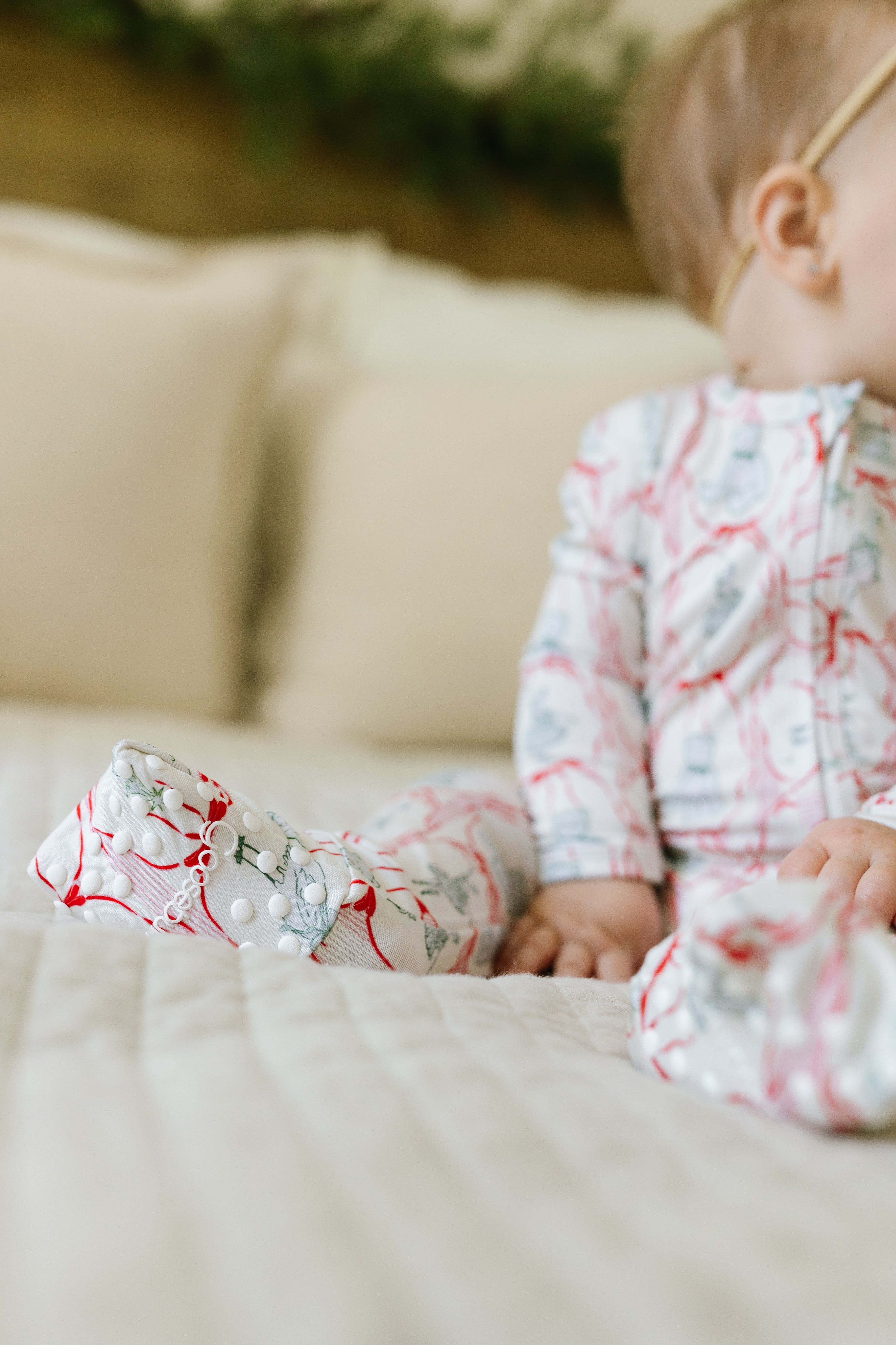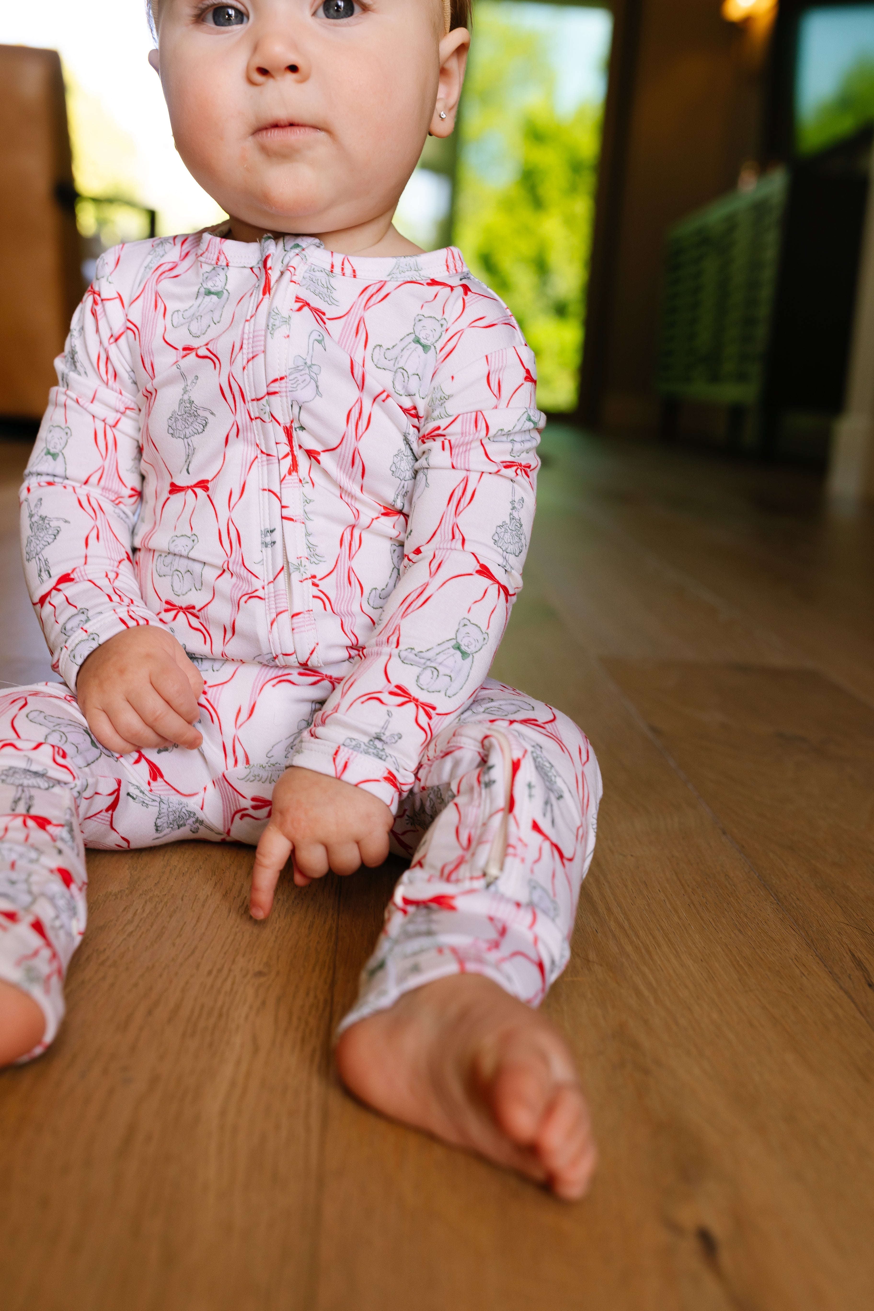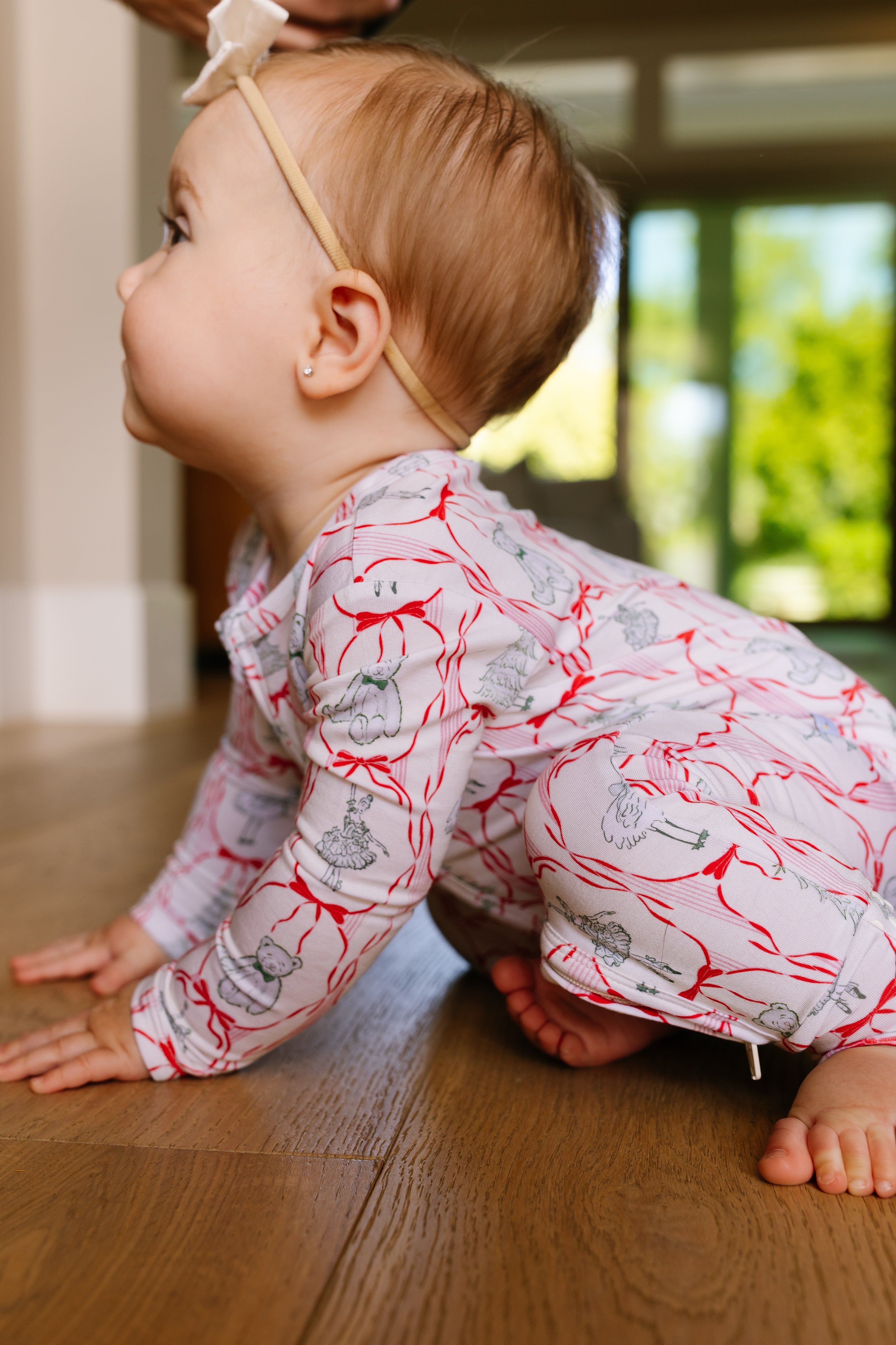 dress your babe in our modern, delicate one piece 2 WAY zipper closure w/ long sleeve. Crafted with our signature optional footie, with an optional footie cuff. Fold over mittens on the 0-3 month zipper.