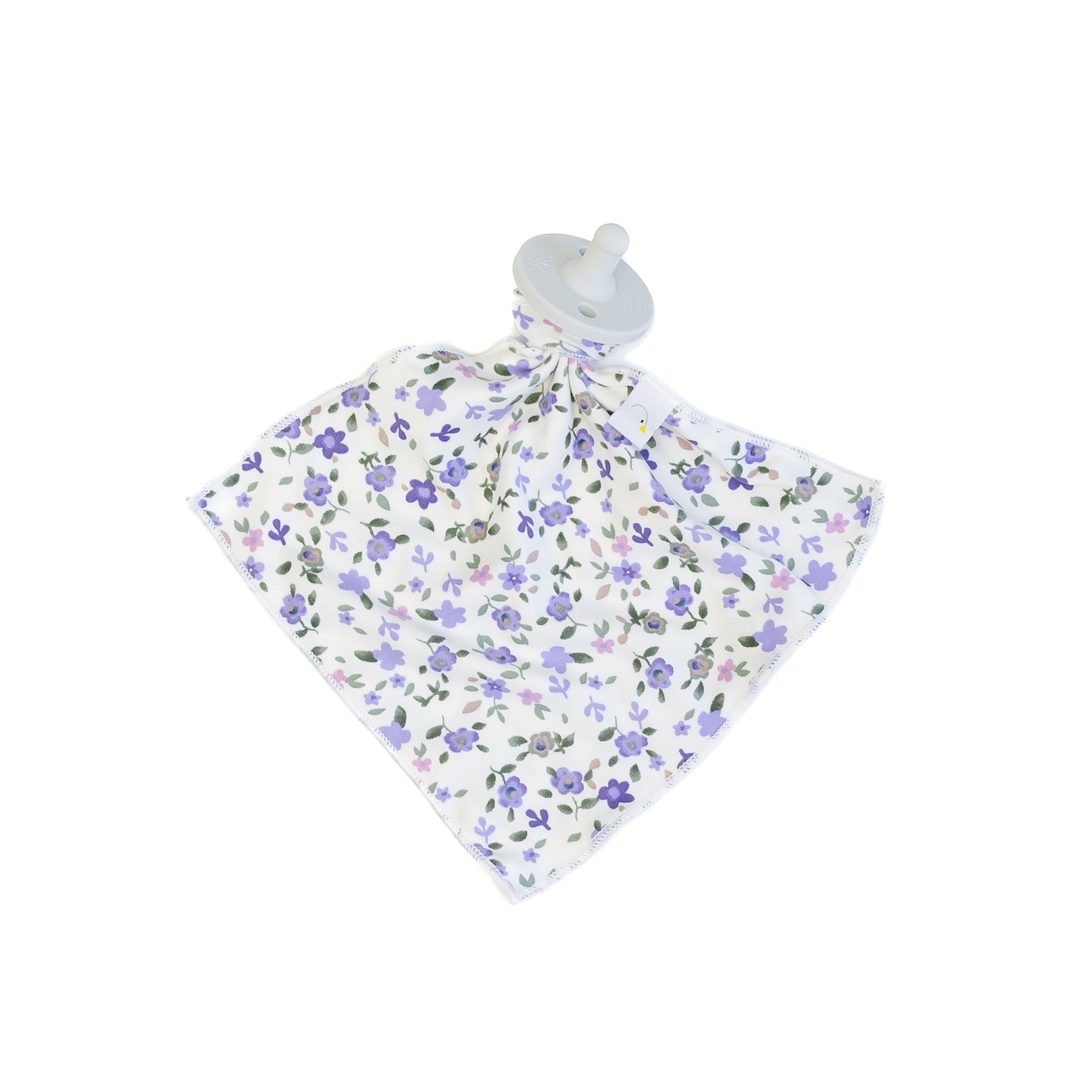 - our 9X9" mini swaddle that can be attached to any pacifier, teether or toy