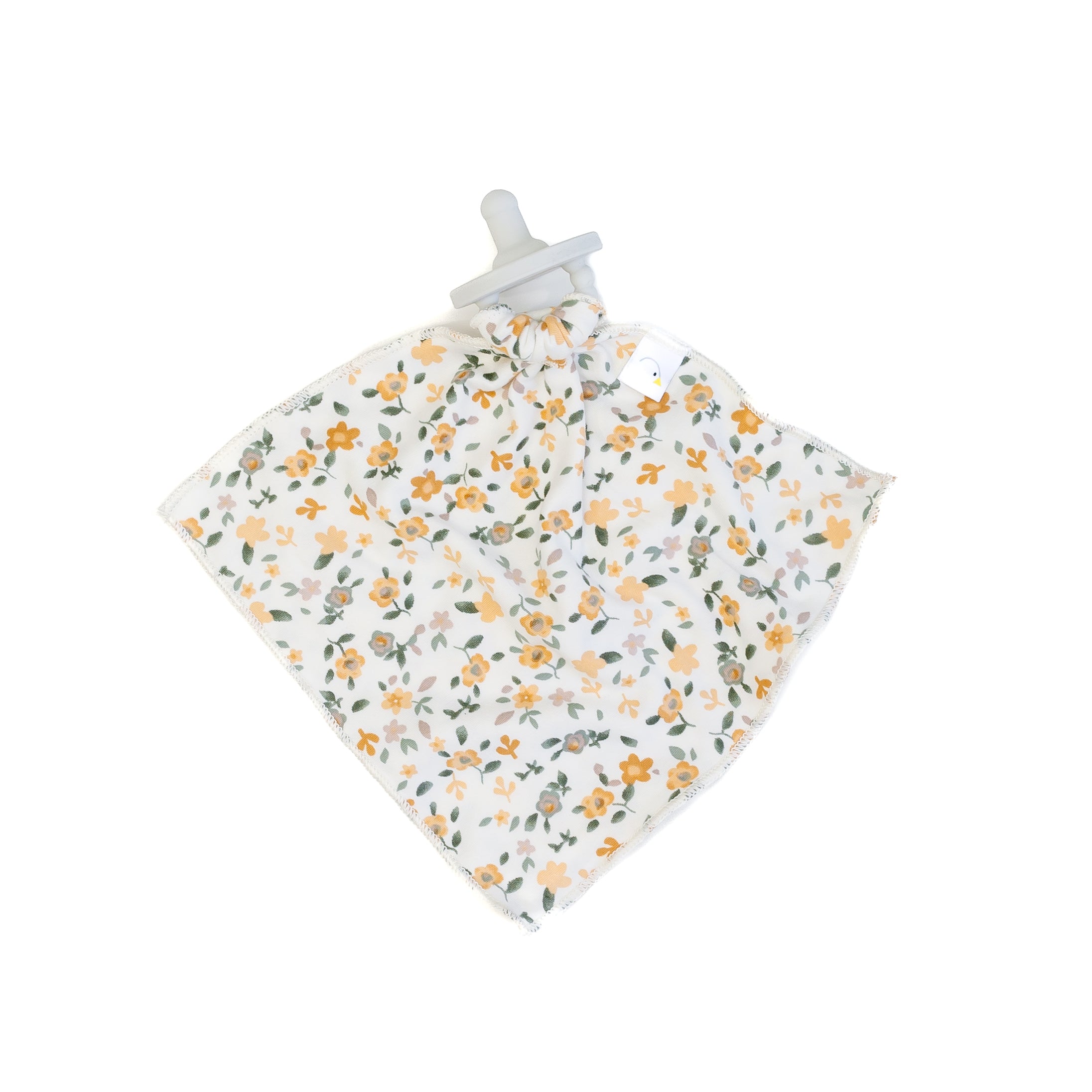 - our 9X9" mini swaddle that can be attached to any pacifier, teether or toy