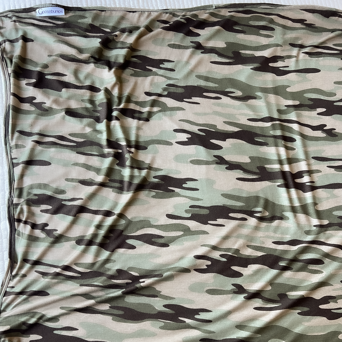 - green, tan and dark brown camo, binded & backed in same