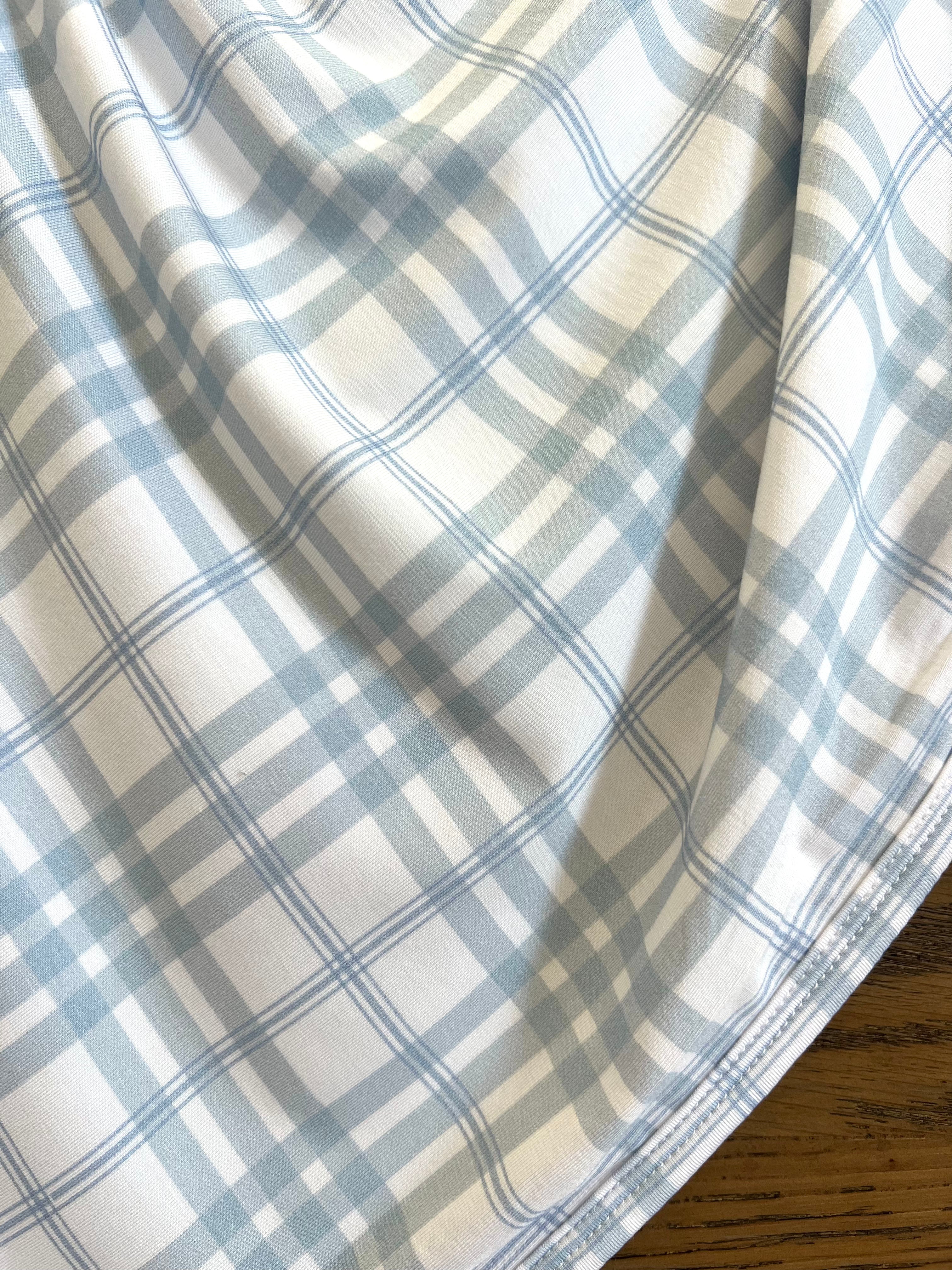 - blue and ivory plaid, binded & backed in same