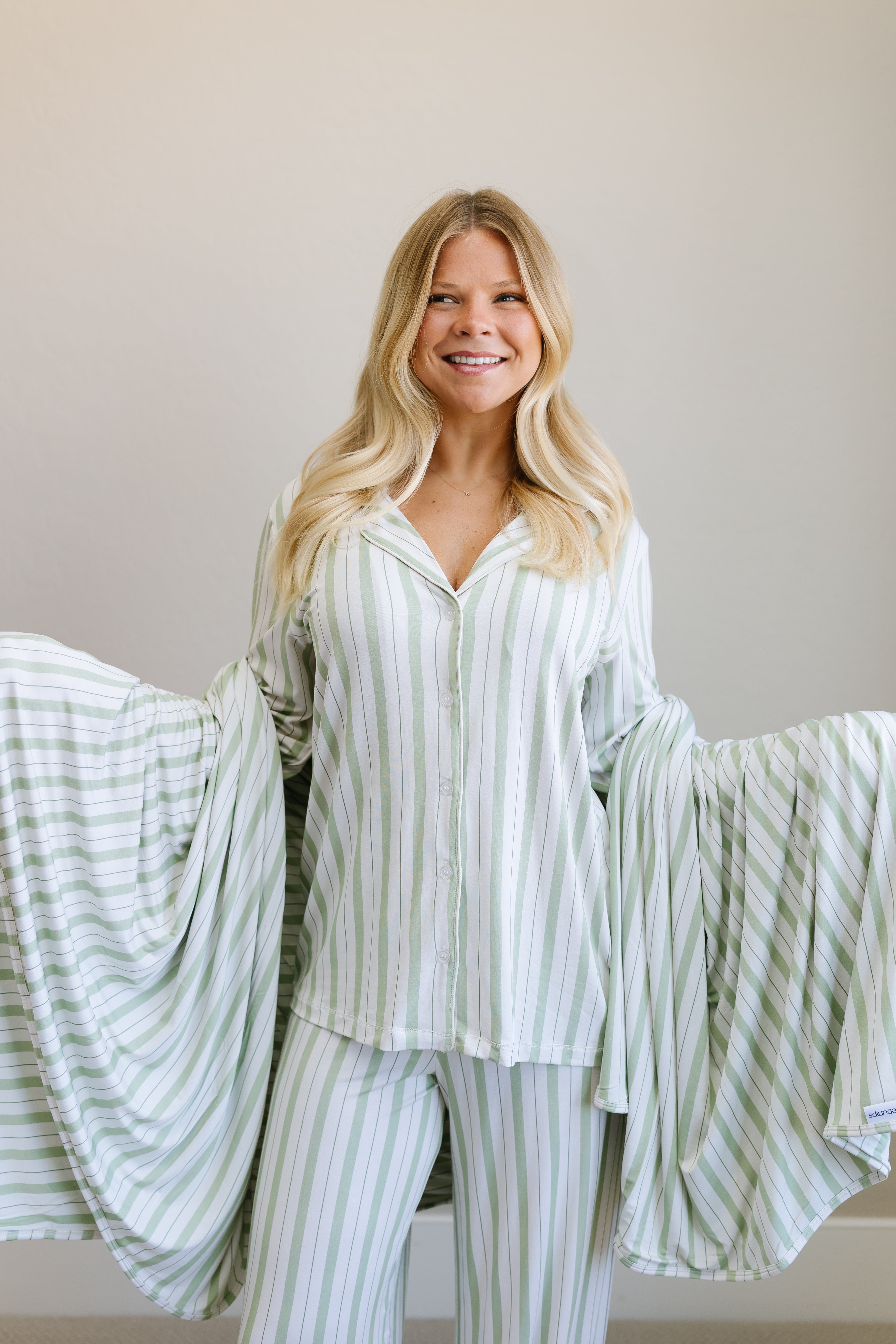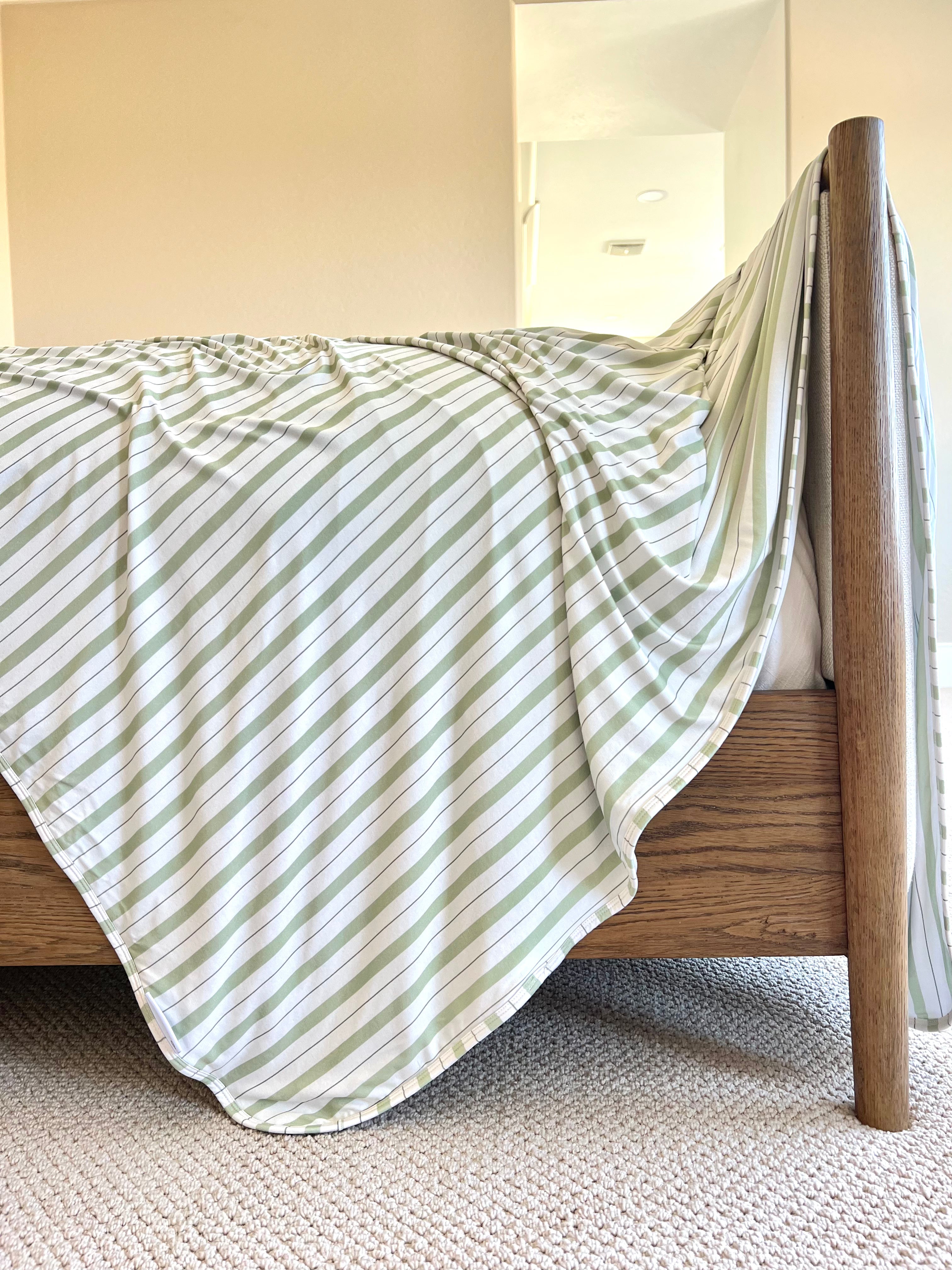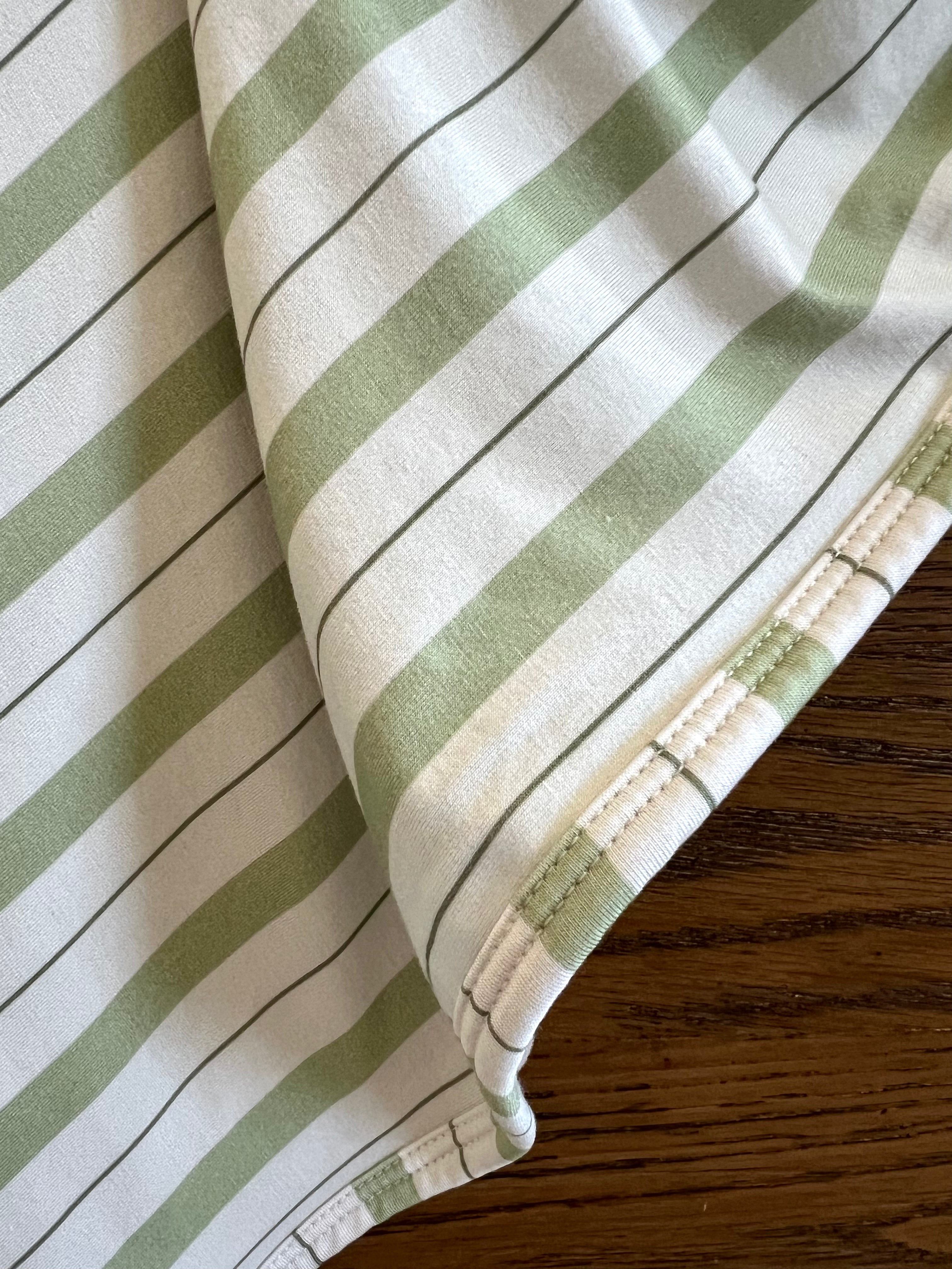 - sage green stripe, binded & backed in same