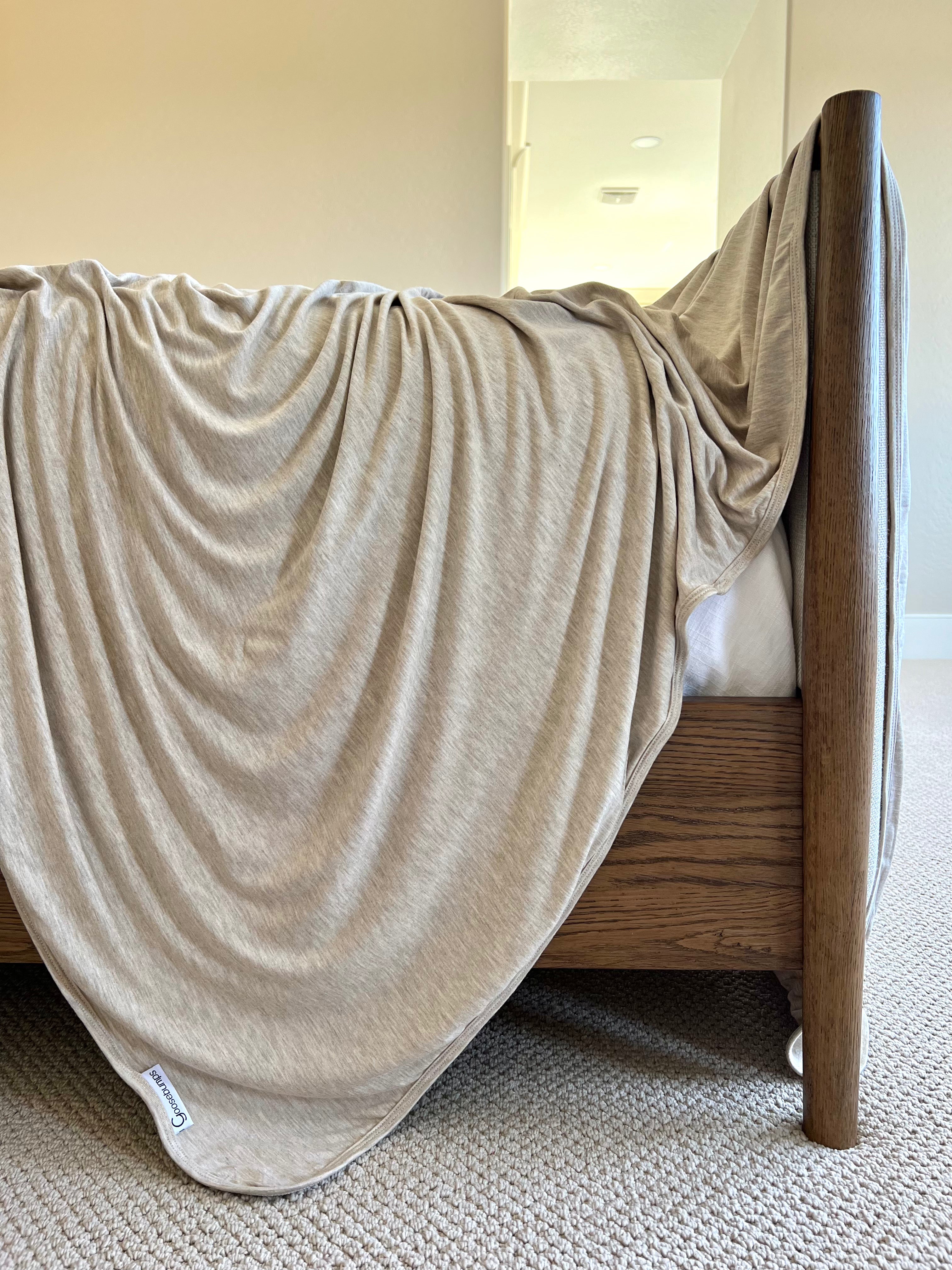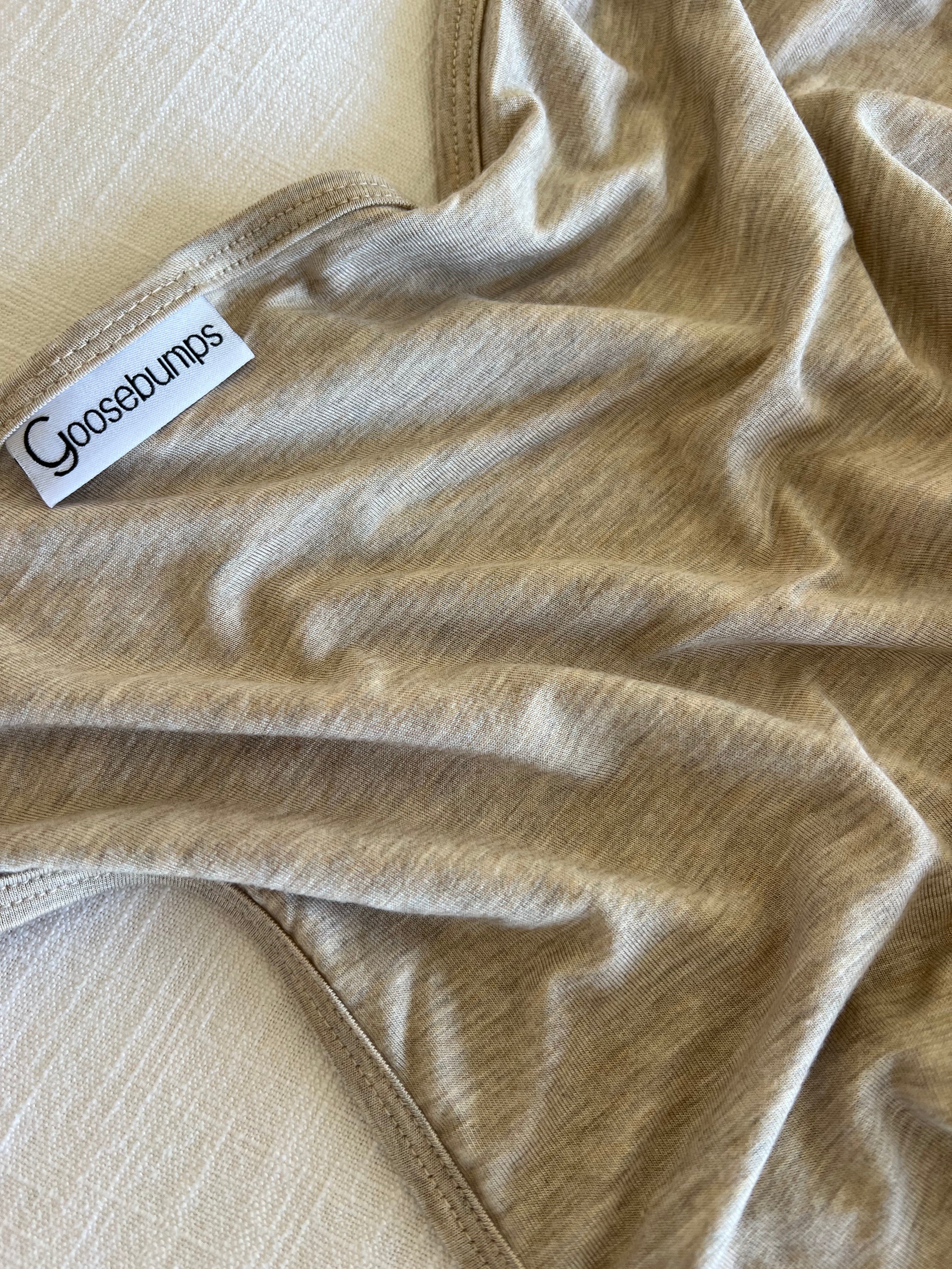 - heathered oatmeal solid, binded & backed in same
