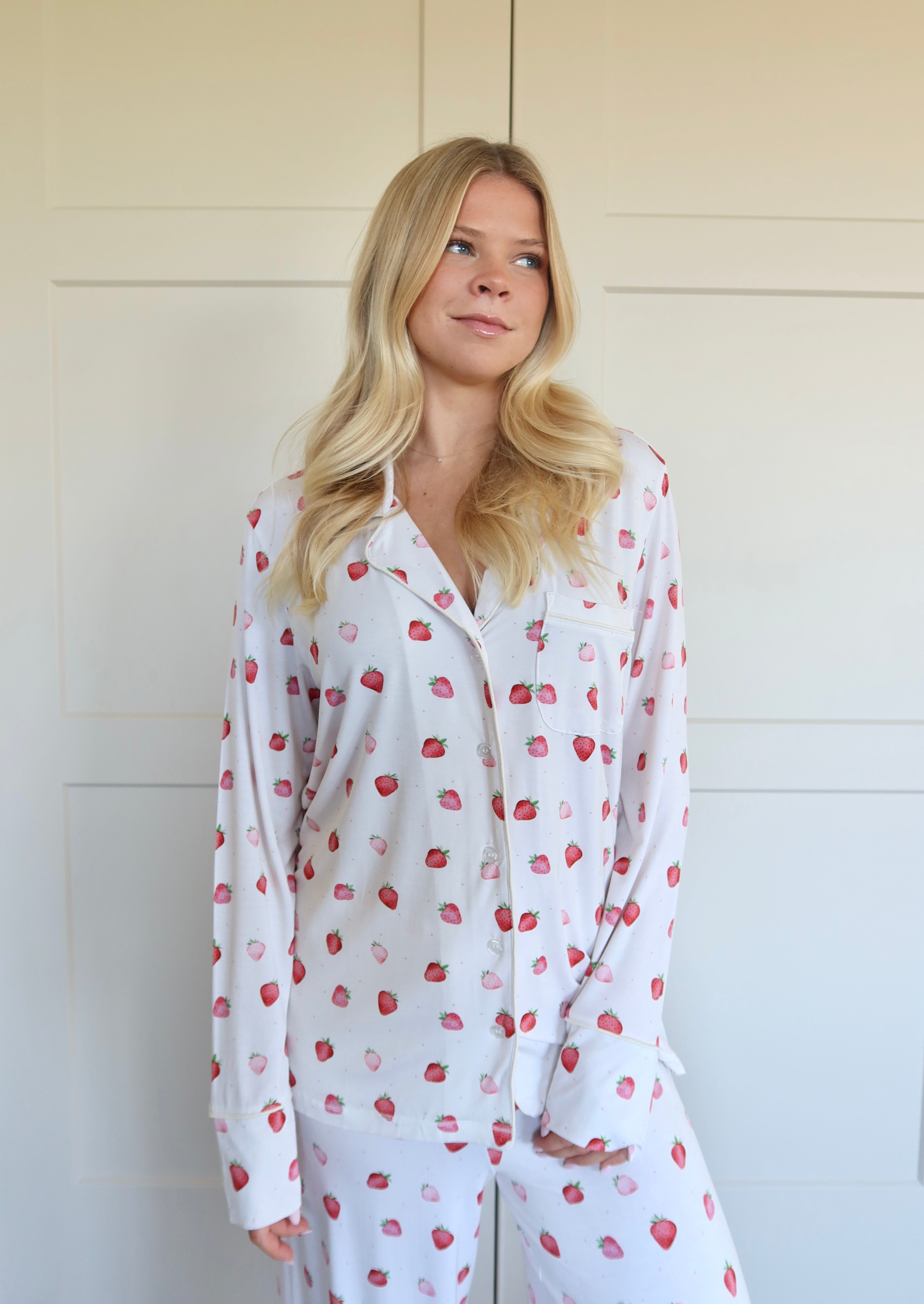 Unwind in absolute comfort with our classic top adorned with a button closure, notched collar, gracefully long sleeves and accented with piping for a touch of timeless elegance. Paired perfectly with our matching pant boasting a cozy elastic drawstring waist, completed with ties and complementing piping details. Every aspect is designed to enhance your lounging experience, the Goosebumps way.