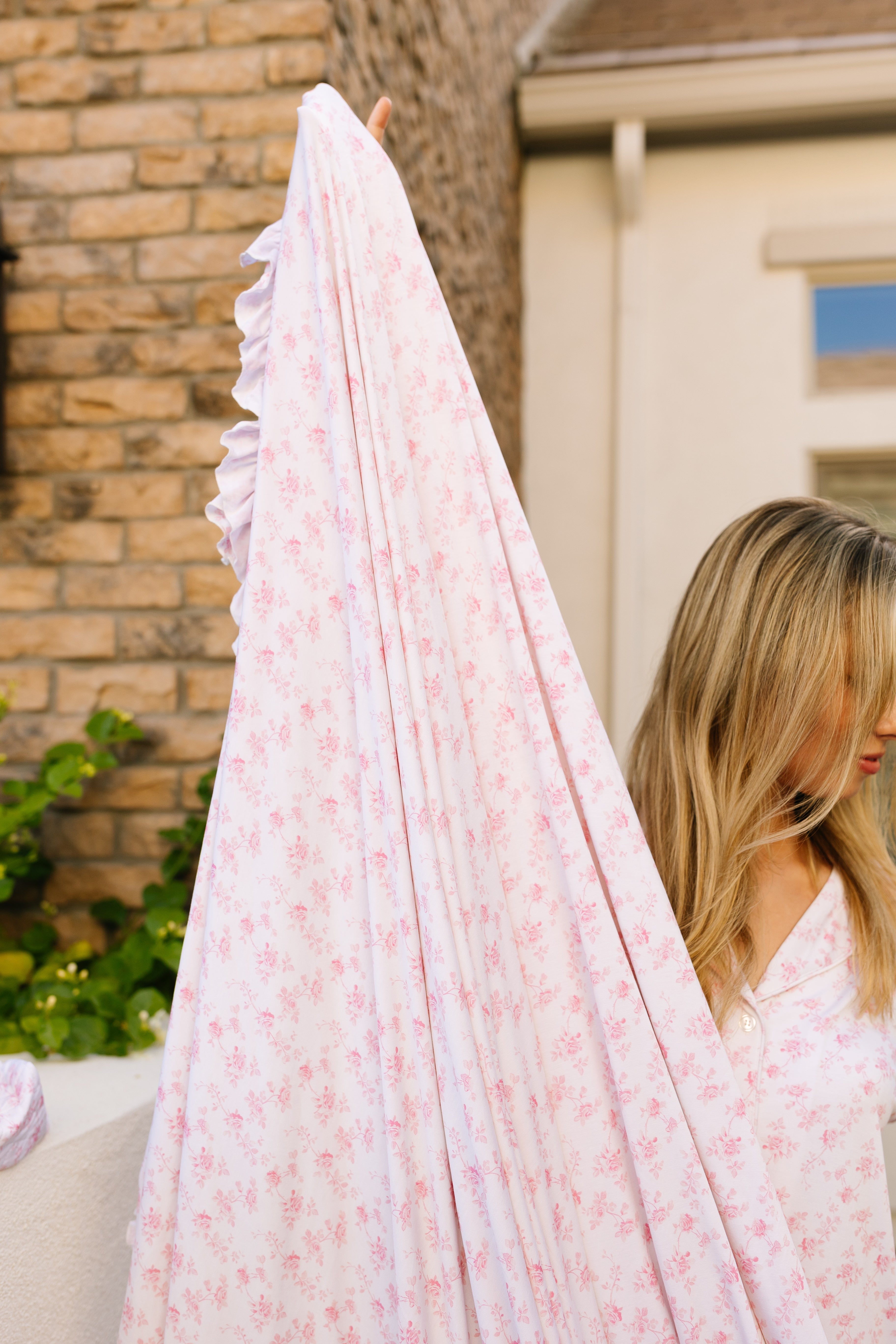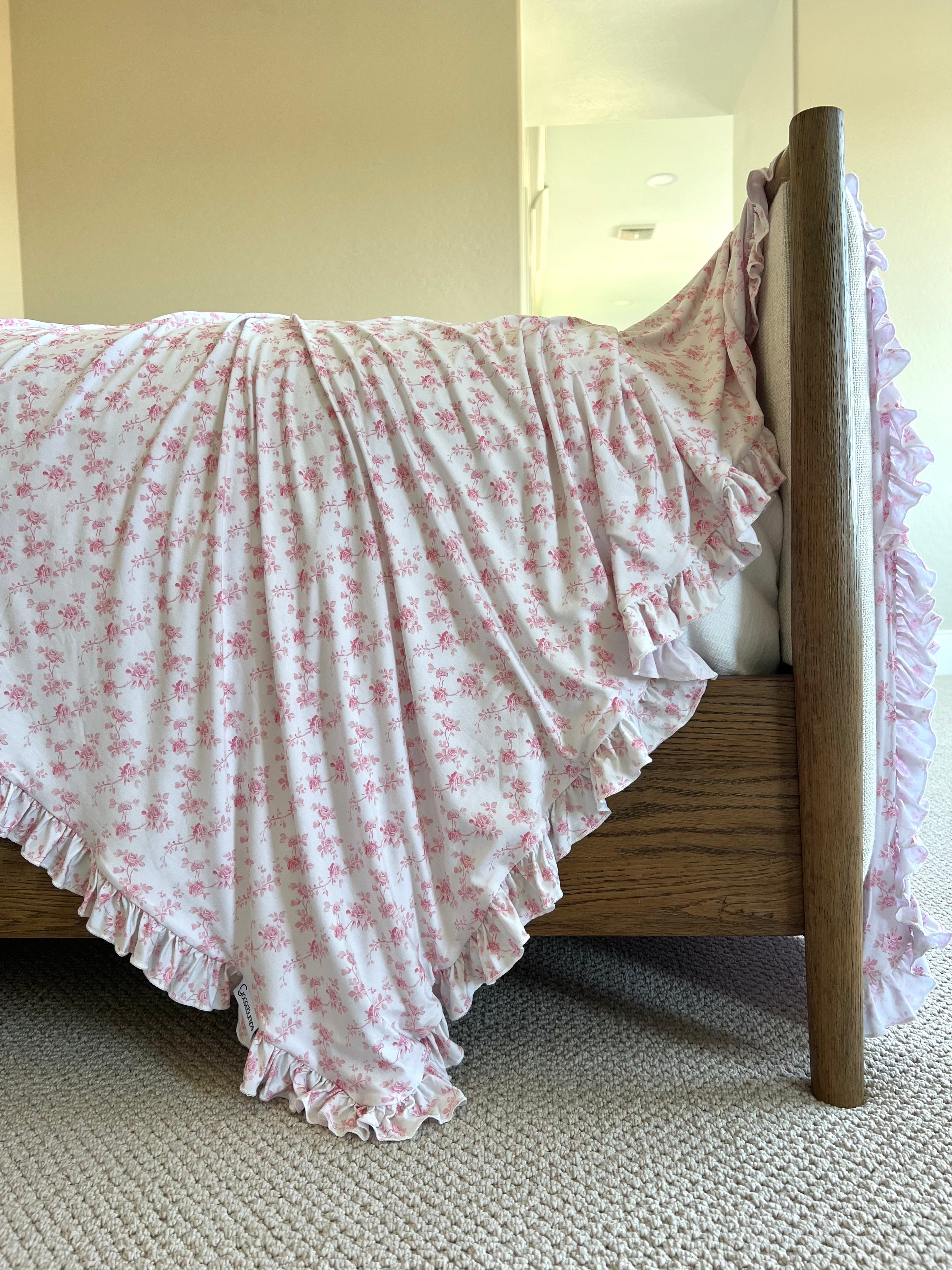 - pink and white floral print, binded & backed in same