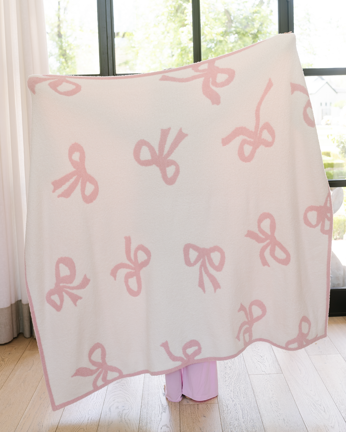 - pink and ivory bow with border