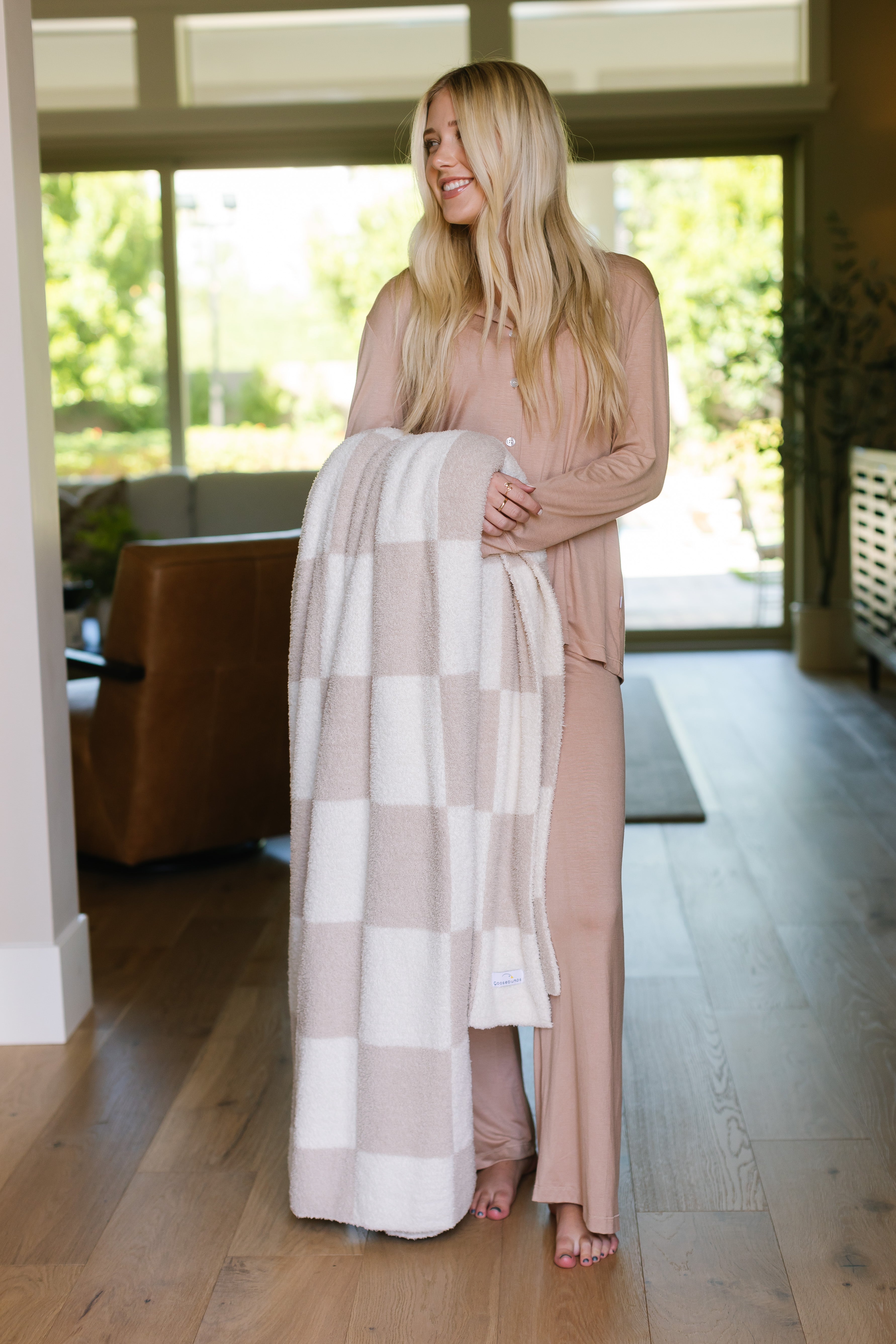 checkerboard / tan / plush