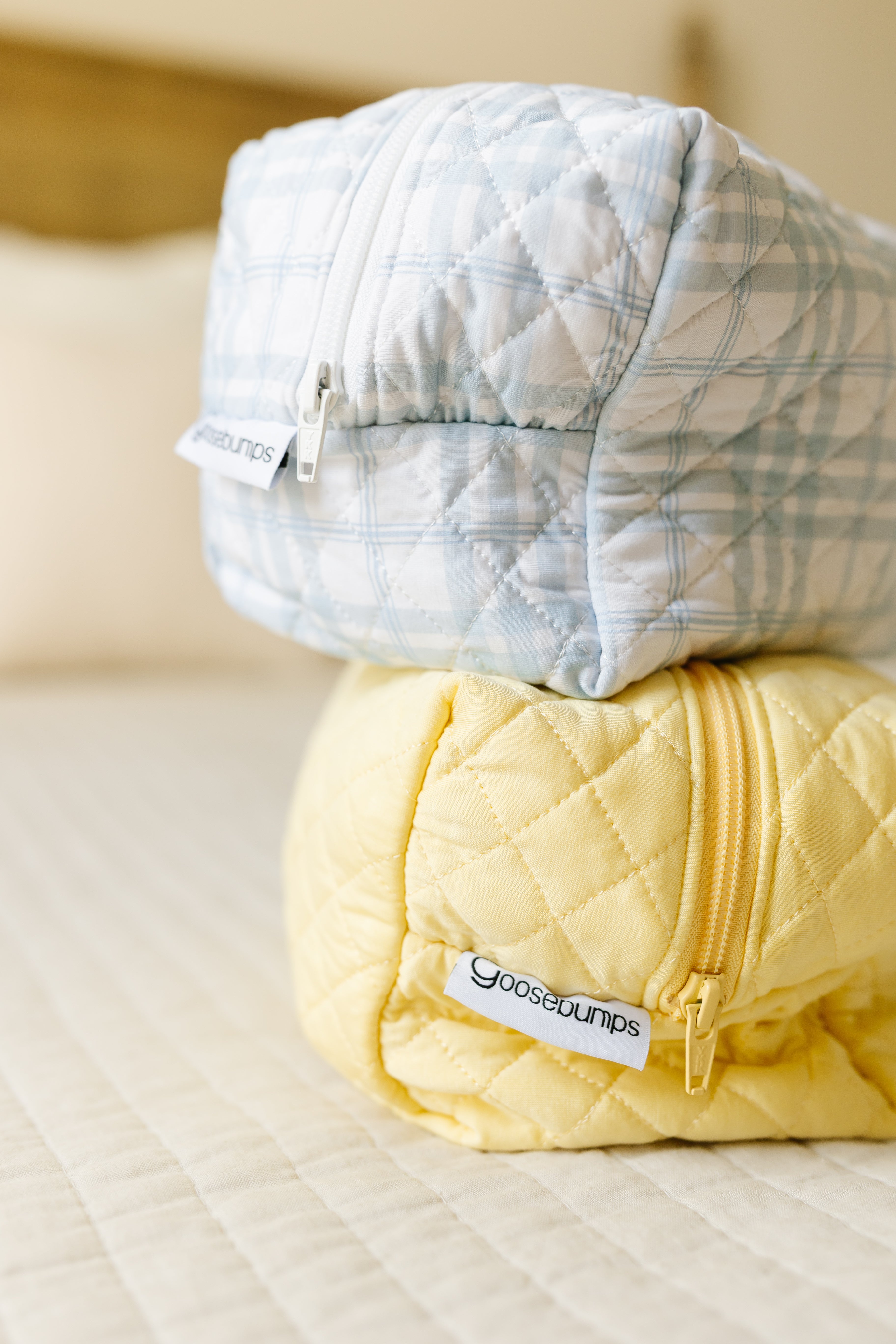 Meet your new travel essential: the Goosebumps Travel Bag! Designed in our signature custom Goosebumps prints, this adorable bag is perfectly sized (10"x6"x6") to carry your adult swaddle with ease-every size fits like a dream. Not only is it super functional, but it's also as soft to the touch as your favorite Goosebumps goodies. Stay stylish and cohesive while traveling in ultimate comfort. Because who says your travel accessories can't be as cute and cozy as you are?